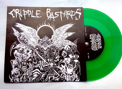 So, the next FOAD Records release (F.O.A.D. 062) is a very limited motherfucker that will be quite hard to get. Italy’s Grind/Hatecore monsters CRIPPLE BASTARDS are leaving now for their 2 week tour in Japan and Australia. It’s their very first time there in 26 years of blasting violence, and for this special occasion they put together a limited tour 7″EP including 3 unreleased tunes: a cover of an old Japanese fast-core legend, a cover of an Aussie HC classic and a never-heard-before CB track taken from a 2003 studio session. Only 250 copies of this have been pressed on transparent green vinyl, hand numbered and will be only available at these upcoming shows…: