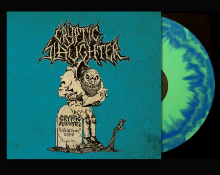 2nd pressing of this thrashing speedcore classic with blue background on the cover (the previous pressing was red)! California’s pioneers CRYPTIC SLAUGHTER team up with FOAD Records for an incredible vinyl treasure finally giving the right treatment to their legendary “Life in grave” Demotape 1985 and to an accurate selection of ultra-rare/unreleased recordings ranging from their 3 piece line-up era (1985) to the “Convicted”/”Money talks” days. This release has been in the works for months until we found the top sounding masters in existence and restored them for the best possible audiophile result when pressed on vinyl. Side A includes the band’s Demotape “Life in grave” adding 2 rehearsal tracks from the same period, one is a speeded up HELLHAMMER cover and one is a super-raw version of VENOM‘s “Welcome to hell“. Side B is all focused on the “Convicted”/”Money talks” 4 piece line-up and includes various live recordings and a good sounding rehearsal 1986. All songs here are performed even faster than how they were played on their classic albums.
