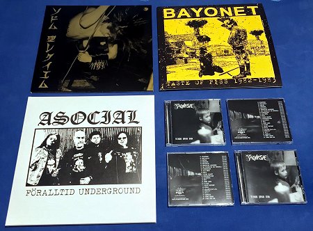 BAYONET “Taste of piss 1982-83” LP+CD, SODOM “St. Requiem” 2nd press LP+7″, ASOCIAL “Föralltid Underground” LP and YACOPSAE “Timeo ergo sum” CD out now on FOAD Records!!