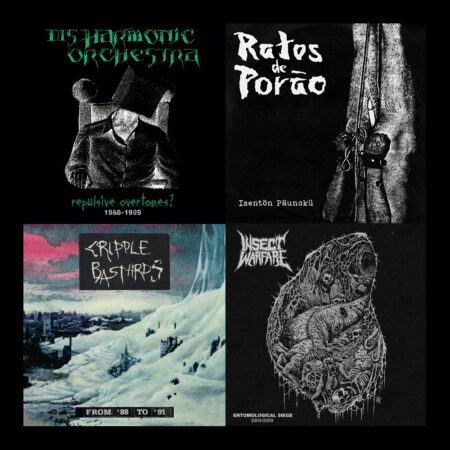 The diehard splatter vinyl version of DISHARMONIC ORCHESTRA is completely sold out on preorder, those of CB and RDP are also going quickly, if you haven’t secured them to your collection yet, don’t think twice! So, to recap: DISHARMONIC ORCHESTRA “Repulsive overtones? 1988-1989” 2xLP+CD and digipack 2xCD, RATOS DE PORÂO “Isentön päunokü” 10″MLP, CRIPPLE BASTARDS “From 1988 to 1991” 2xLP and INSECT WARFARE “Entomological siege 2004/2009” 2xCD+DVD boxset are out NOW on F.O.A.D. Records! What to expect next month? 4 more crimes against humanity in a total THRASH key, ranging from 2 treasures of the ’80s to 2 current bands. Wait and see!!