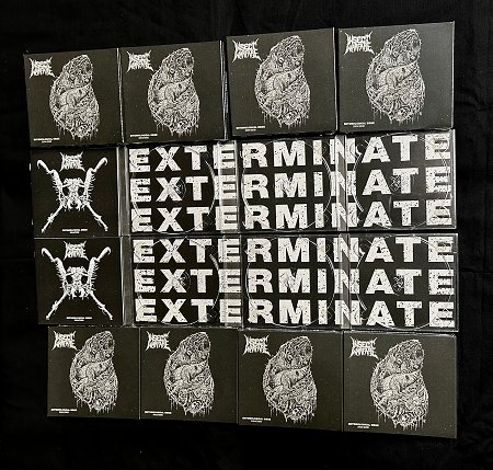 Back in stock by popular demand. Get ready for a pulverising sonic hecatomb delivered by Texas’ unmatchable Grindcore assassins! The ultimate INSECT WARFARE collection including all their singles, demos, compilation tracks, out takes and alternate recordings, unreleased tracks and rare live material… 99 songs, nearly 3 hours of merciless brutality. All scrupulously mastered for the best sonic deflagration! Triple disc set served in a deluxe multi-panel digipack with exclusive art by Lucas Korte, with a massive booklet filled with original artworks, scans of all the included works, flyers and photos. Plus a bonus DVD with their complete gig at Annie’s that simply kills! If you dreamed of having all the hard to find INSECT WARFARE singles and rarest recordings all gathered in the same place, this is finally the definitive chance!
