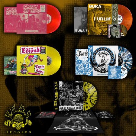 Everything has already been outlined in the previous post so to make a long story short: JANKY “Dead society 1983-1987” LP+CD (new edition), MILITARY SHADOW “The age of cobalt bomb” LP, V.A. “BUKA I URLIK (1983)” LP+CD, EDIÖNDÖ “Toxic love” LP and KAGADA DE PERRO “Victimas de horror” LP are out now on F.O.A.D. Records!!  All pre-orders have already been shipped and tracking numbers updated, we are also starting to send wholesale orders to our worldwide distributors, so you’ll soon be able to find these titles from your local dealers as well, you know where to find them! Watch out because from next month we are completely changing course, there will be 5 releases again but musically we’ll be drawing weapons to a completely different battlefield… it’s part of the unpredictability and variety of choice of our label.  Stay tuned because among the upcoming titles we’ll have some stellar announcements that will make your jaw drop!